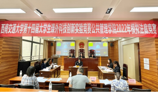 学生会承办的,西南交通大学第十四届大学生课外科技创新实验竞赛活动暨2022年模拟法庭竞赛复赛于九里校区模拟法庭实验室01417拉开帷幕。