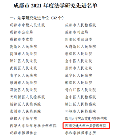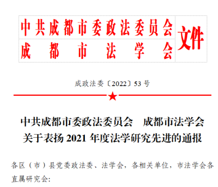 获成都市2021年度法学研究先进单位荣誉称号,足彩投注