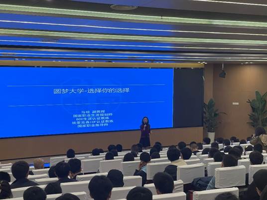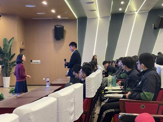 党委副书记马琼副教授为大家带来了一堂精彩纷呈的职业生涯规划课程。从高中学生的困惑入手,马老师向同学们讲述了职业生涯规划的可能性与必要性,引发深思。通过一则短视频,马老师引入“潜能公式”的应用,并从目标确定、潜能激发、化解外界干扰三个角度为同学们进行了细致讲解。现场氛围轻松有趣,同学们受益匪浅。互动环节,同学们踊跃参与,积极发言,针对同学提出的“高考后报考学校时应该更注重地域还是专业”这一问题,马琼老师从个人兴趣、未来发展等多角度进行了耐心讲解。