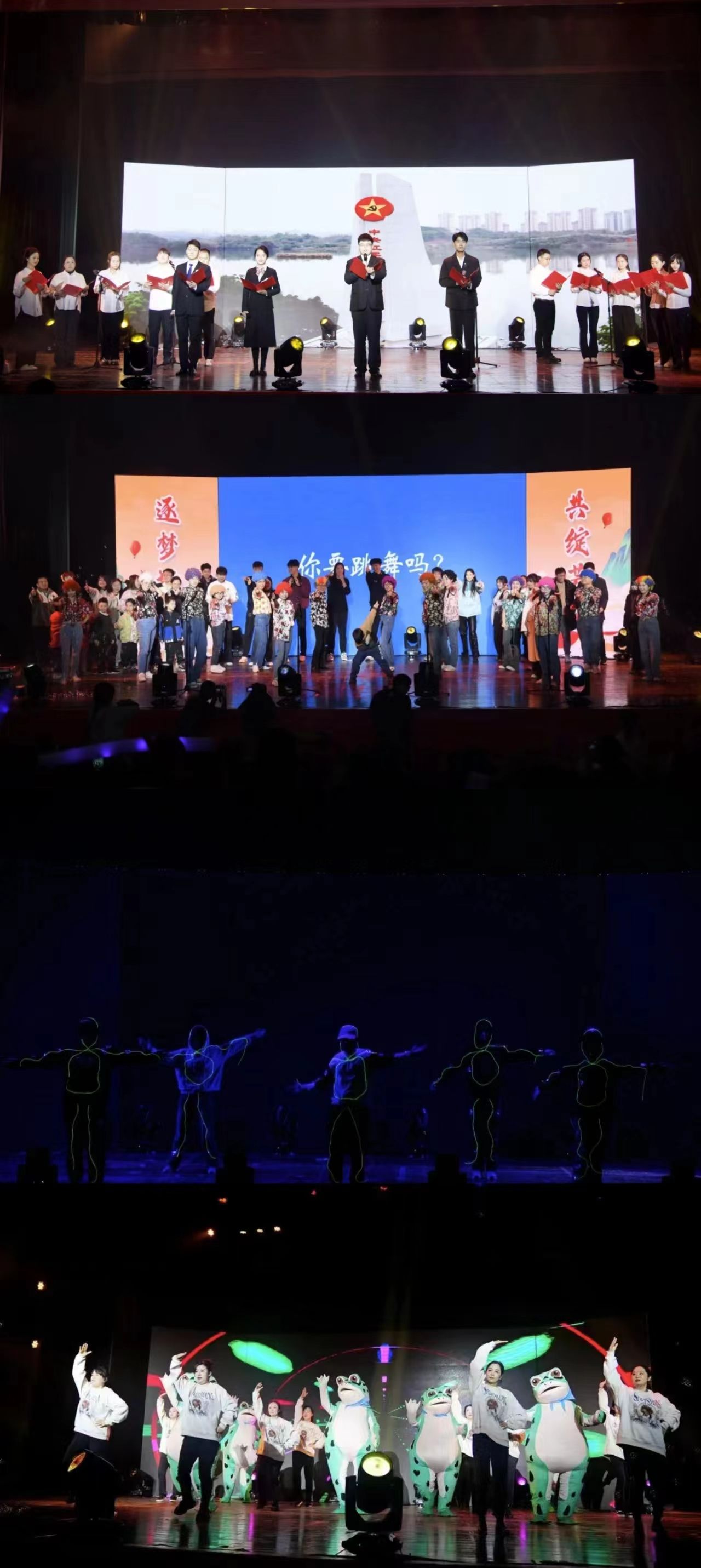 穿越历史的云烟,峥嵘岁月历久弥新;伴随岁月的回声,征途历程气势如虹。仰望历史的天空,中国故事熠熠生辉;跨越时间的长河,文化交流绵绵不断。本科生代表和管小苗的《用英语讲中国故事》向我们展示着文化自信,《全民运动会》用幽默诙谐的方式让大家感受到了体育运动的魅力;《体育梦·青春梦·中国梦》体现体育运动中蕴含着的民族精神,排球、足球、羽毛球……每一个中国人都享受着体育运动的无穷魅力,以健康的姿态迎接未来。瞧!大家在为跌倒的管小苗加油鼓劲,他勇敢的站起来,将接力棒继续传递下去!一代又一代中国人不断接下时代的接力棒,拼尽全力的向前奔跑,走向民族复兴、强国建设的崭新征途!