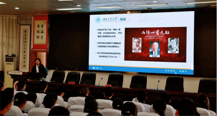 讲座结束后,薛婧为在场同学介绍了西南交通大学办学特色、历史发展、课程体系、专业设置、人才培养、招生政策等情况,并期待有更多蓬中学子走进交大、圆梦交大。她勉励大家开阔视野,奋发图强,努力成长为可堪大用、能担重任的栋梁之才。