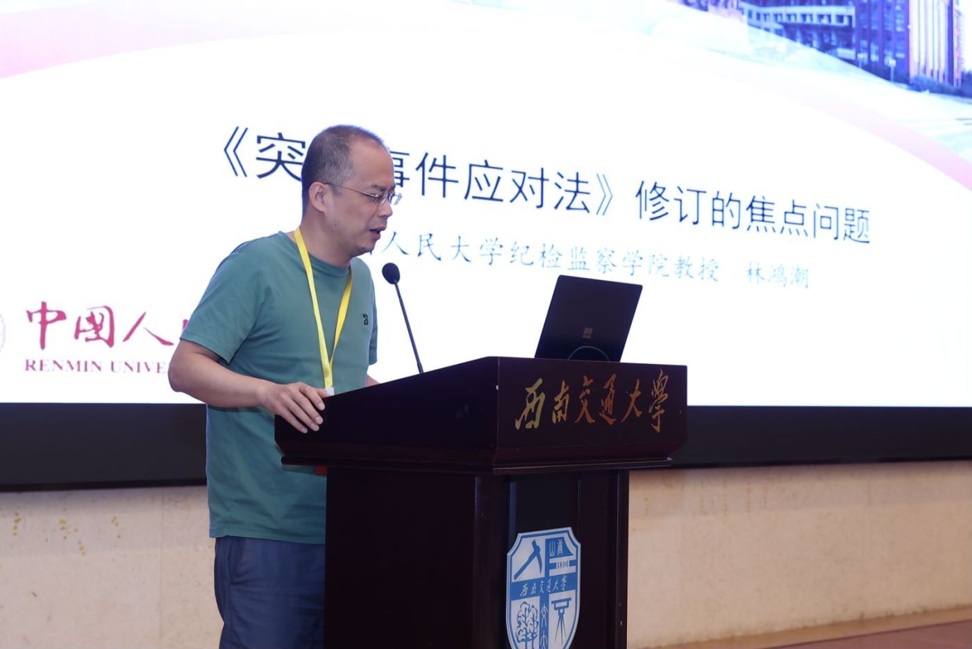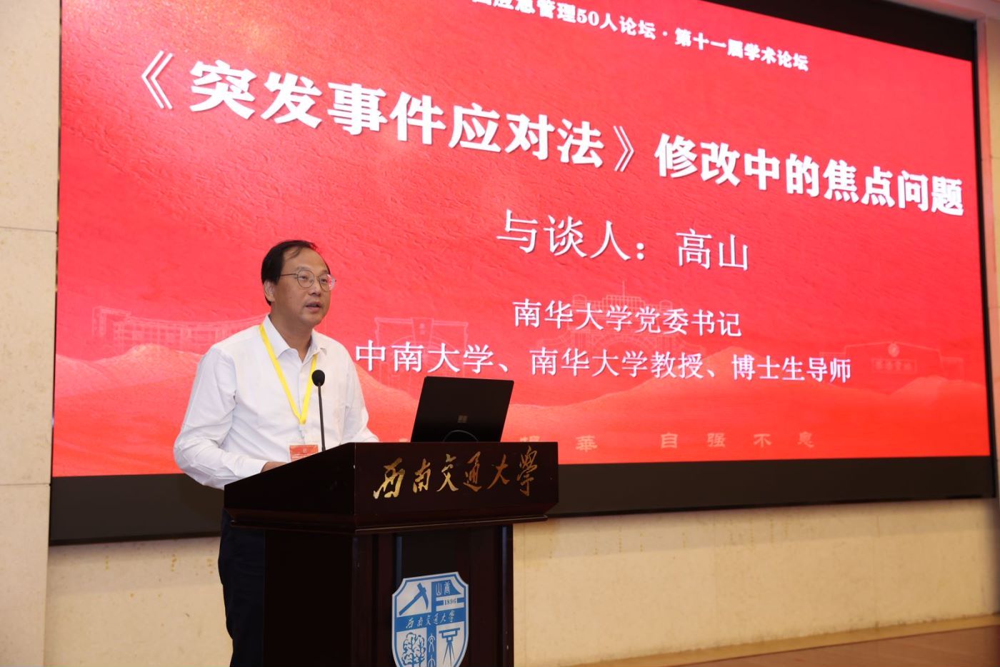 林鸿潮教授对《突发事件应对法》修订中的焦点问题进行了讲解。北京市科学技术研究院科研处处长、城市系统工程研究所所长朱伟研究员,兰州大学副校长沙勇忠教授,南华大学党委书记、中南大学、南华大学教授高山分别围绕主旨发言做了与谈交流。