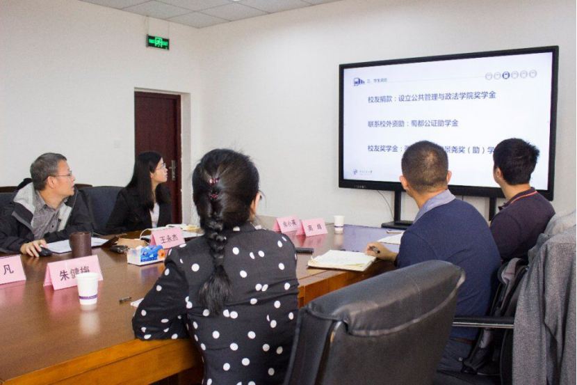 党委书记高凡教授,院长王永杰教授,党委余小英副书记以及副院长李华强副教授出席本次调研会议,校院两级领导共同商讨对外工作的有关事宜。