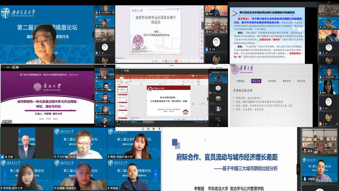 为积极贯彻落实党中央和四川省委疫情防控工作,第二届公共管理峨眉论坛以云端会议方式与全国学者共同研讨交流面向2035的国家治理现代化相关议题。2020年12月12日,由西南交通大学公共管理与政法足彩投注