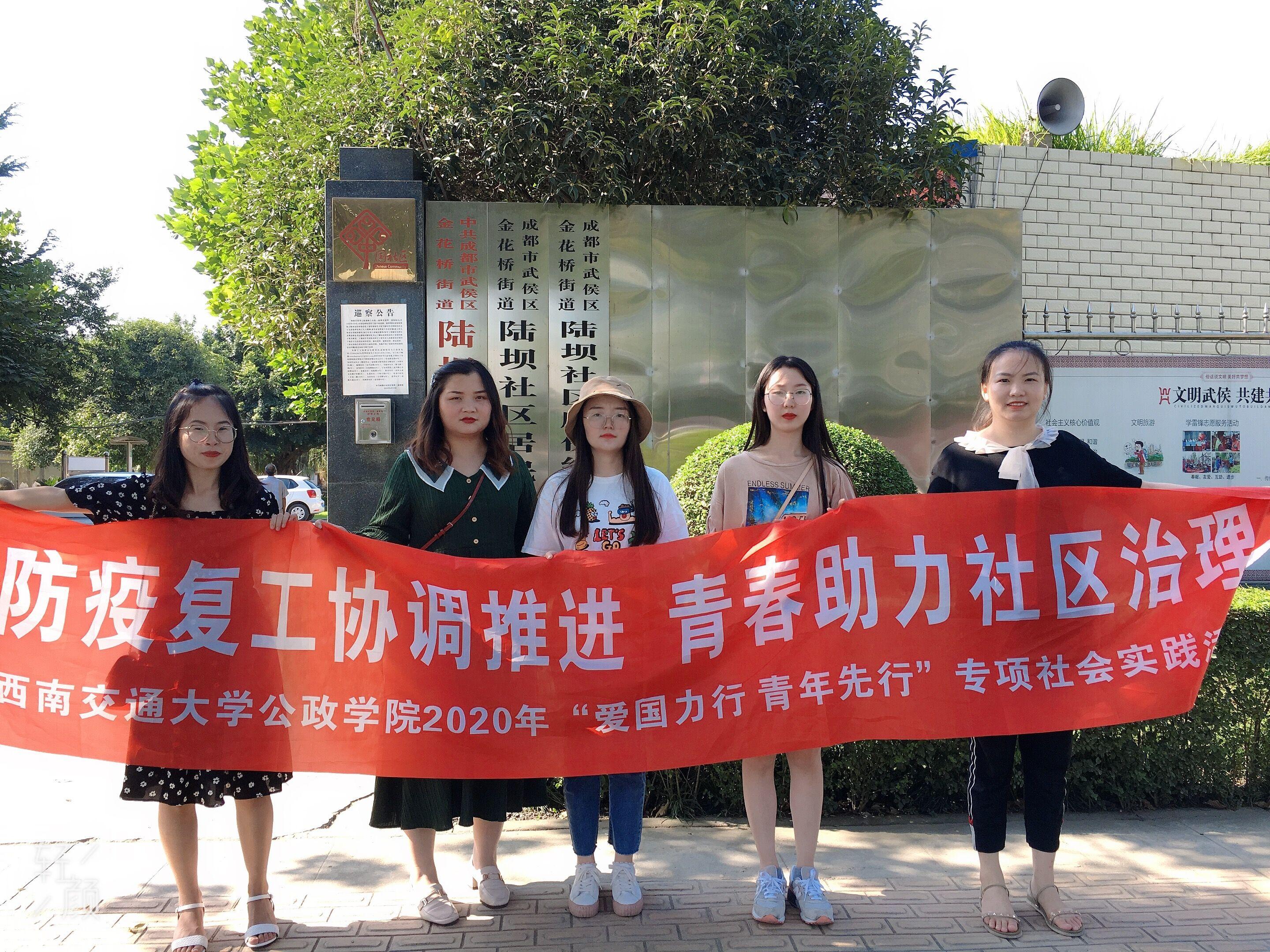 以“防疫复工协调推进、青春助力社区治理”为主题,“小小小萤火虫”团队前往成都市武侯区金花桥街道陆坝社区开展为期一月的暑期普法下乡实践活动。团队以所学法律知识为基点,通过精准普法,输出“法律就在你我身边”理念,助力社区多视角多方位提升基层治理水平。团队分为“深入学习陆坝社区的抗战精神”“走访调查社区疫情防控常态化下的复工复产情况”“为社区留守儿童送去暑期第一堂普法课”“积极开展民法典颁布背景下社区普法”四个章节有序推进实践活动并拍摄制作视频,记录助力疫情防控和复工复产,开展服务家乡建设和志愿服务的生动实践。