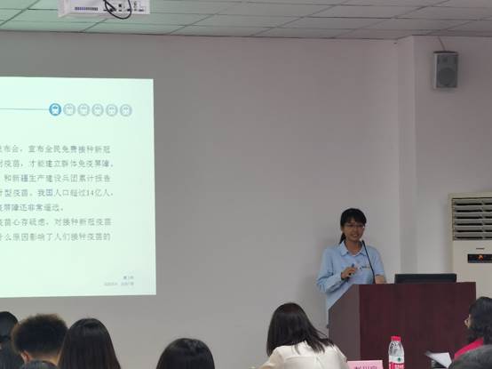 抽签顺序为1的奔赴热点第一线队率先上台答辩,他们采用简单随机抽样方法,抽取西南交通大学部分本科生和研究生进行问卷调查,采用因子分析、主成分分析和卡方检验的方法分析影响其接种意愿和前后意愿差异的因素。通过分析得到西南交通大学学生对新冠疫苗认知度较好、接种意愿较强,但目前实现全民接种还有一定距离,建议持续加大新冠疫苗科普力度,针对不同特征人群开展个性化普及,并加强对疫苗的监督与规范管理。