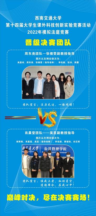 2022年模拟法庭竞赛在4月初拉开帷幕,经过初赛对11支参赛团队提交的司法文书进行匿名评审以及复赛对晋级的六支参赛团队言辞辩论评审,A、B两组分别有一支参赛团队晋级模拟法庭竞赛决赛,现对决赛赛事安排如下: