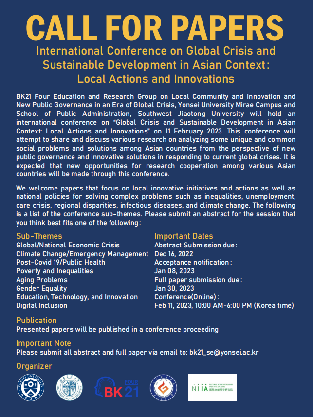 韩国国家科研计划BK21 FOUR“地方政府、创新与全球危机时代下新公共治理教育”项目组、延世大学政商足彩投注