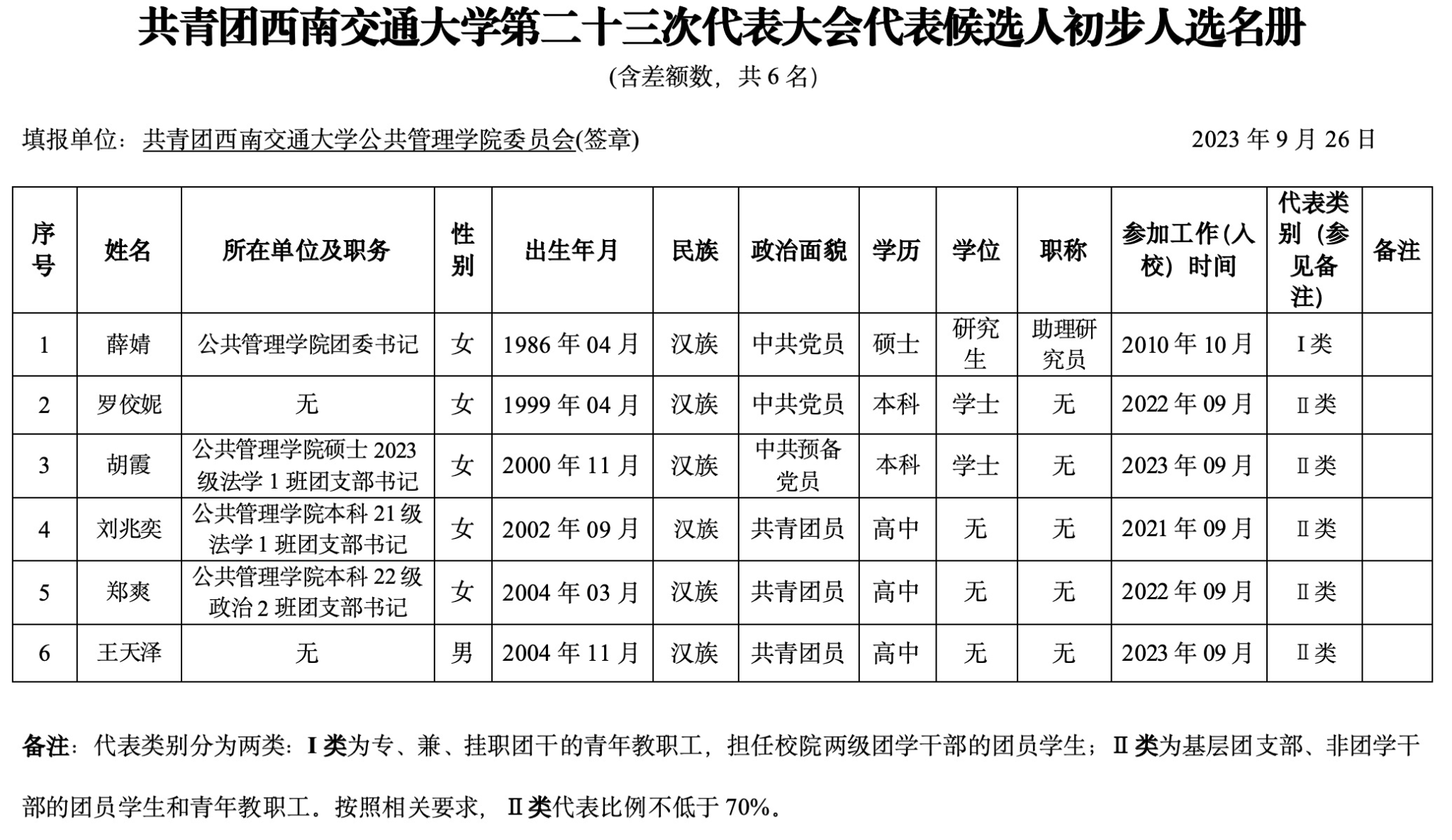 的代表名额及构成要求,结合实际情况,经基层团组织推荐、广泛协商酝酿和组织考察、集体研究,初步候选出以下6名同志作为共青团足彩投注-足球竞猜投注平台