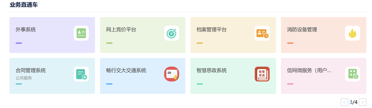 第二步:滑到最下页,找到“业务直通车”,点击右下角的页数,到第3页