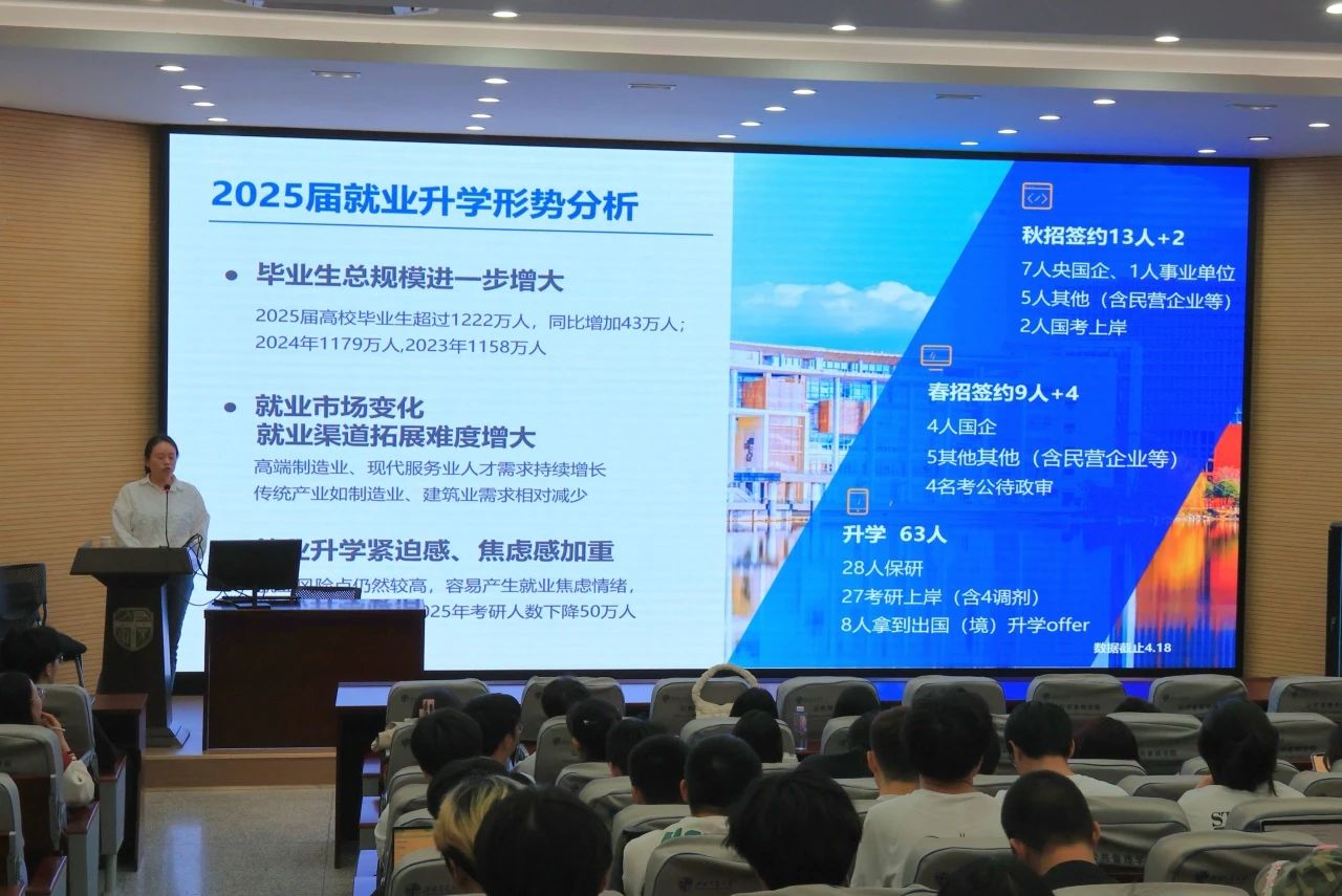 2025届学生的就业升学总体形势引入,分析当前及未来就业形势。结合2024届、2025届考研及就业详细数据,提出综合考量专业与就业匹配关系、提早做职业规划、拓展就业渠道等针对性建议;结合学校智慧就业网相关信息展示求职就业时间安排,鼓励2026届学生坚定方向、锚定目标,选择适合自己的发展道路。