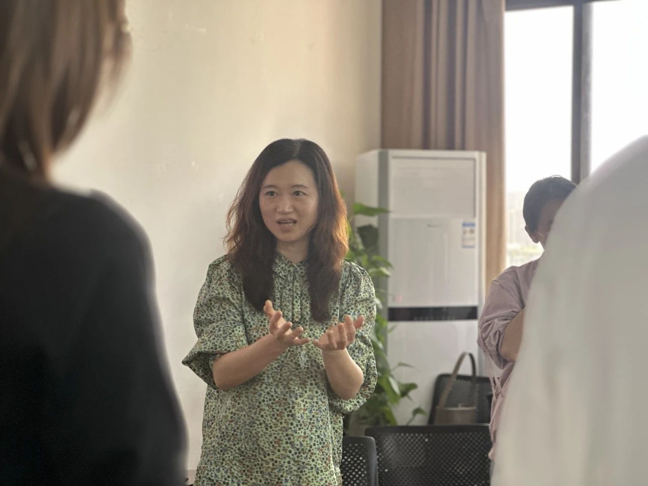 “压力调节并不复杂,它可以从一次深呼吸开始。”一开始,冯老师向同学们介绍了腹式呼吸。在冯老师轻柔的引导下,同学们闭眼感受气息流动,逐渐放松身心。随后,冯老师特别设计了“传气”互动练习,巧妙打破同学们初见的拘谨,让现场氛围迅速活跃起来。