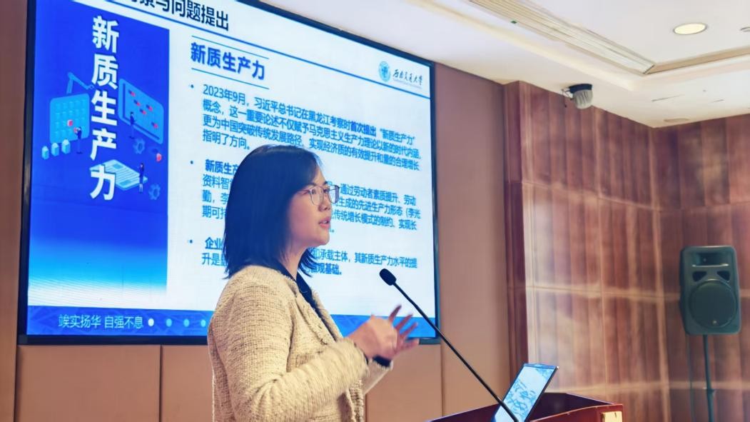 林晶晶老师和严敏老师受邀参会,并进行了学术交流。林晶晶老师分享了论文,讨论了新质生产力的概念内涵与测量方法,并运用文本分析法从上市公司年报里提取有关企业新质生产力测量的数据,并以2014—2023年沪深A股上市公司为对象,对其新质生产力进行测量和讨论。该研究为政府制定相关政策提供了重要的实证依据,报告受到与会专家的热烈讨论。