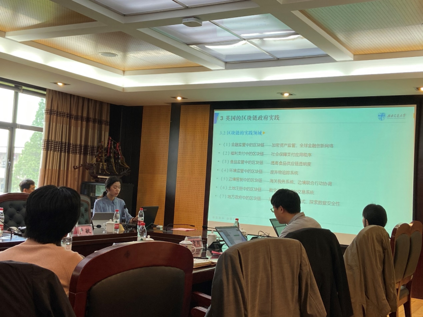 教师严敏应邀参会,就《区块链在英国数字政府中的应用与启示》发表主题报告。