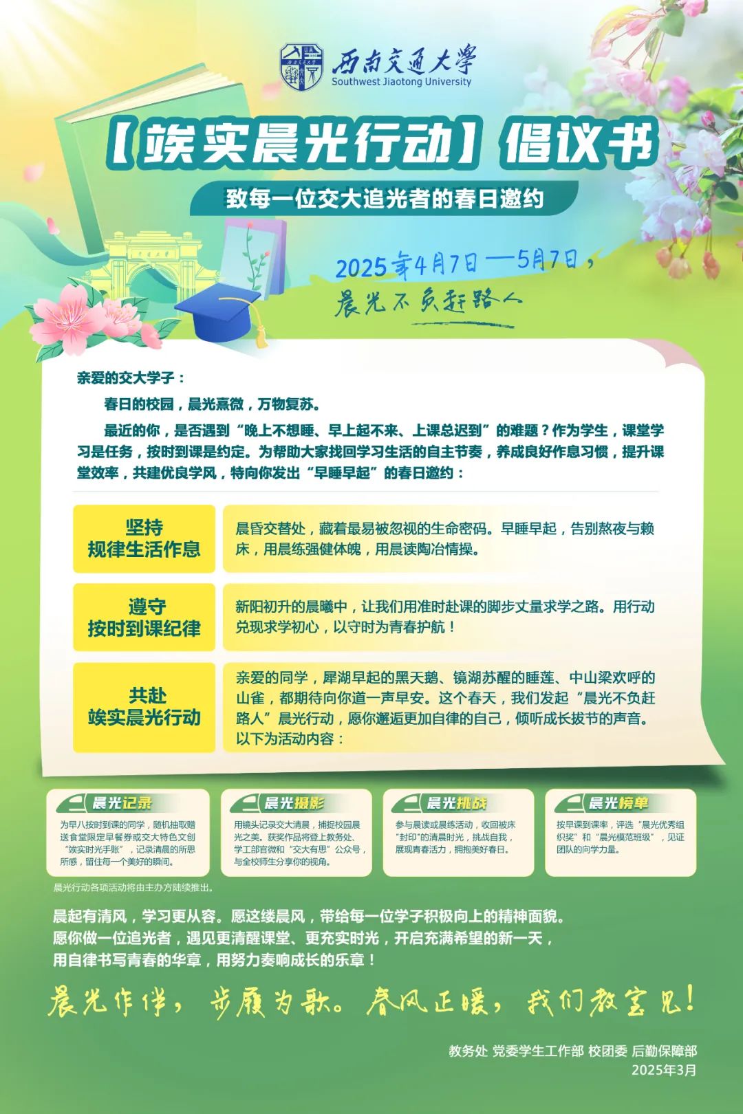 【教务处】竢实晨光行动倡议书——致每一位交大追光者的春日邀约