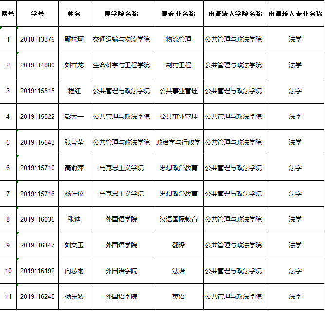 根据《西南交通大学本科生转专业管理实施办法》文件规定、西南交通大学2020年转专业的整体工作安排和公共管理与政法足彩投注 本科生转专业实施细则,经学生本人网上申请,足彩投注 考核,拟同意以下同学转入相关专业学习: