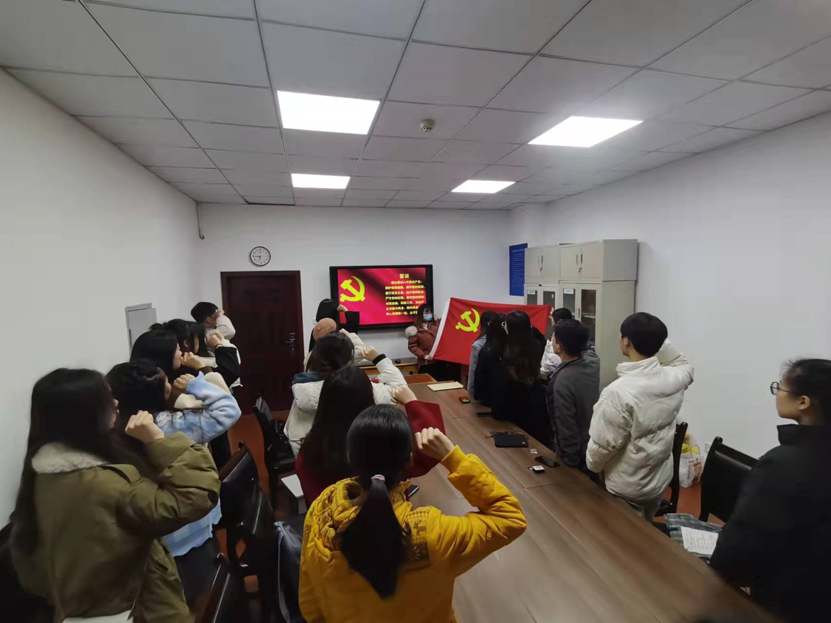最后举行2021年度新入党党员同志入党宣誓仪式及全体正式党员重温入党誓词仪式。新形势下共产党员应该时刻铭记党员责任与义务,增强党员同志光荣感和使命感,从而促进党员发挥先锋模范作用。在奏响国际歌后,党支部书记致辞并对预备党员和正式党员同志提出殷切希望和要求。在高昂的领誓词中,每一位党员同志高举右拳,面对党旗再一次庄重地作出了自己对党的承诺。所有党员同志逐一报出宣誓人姓名,表达自己对党的无限忠诚和坚定决心。