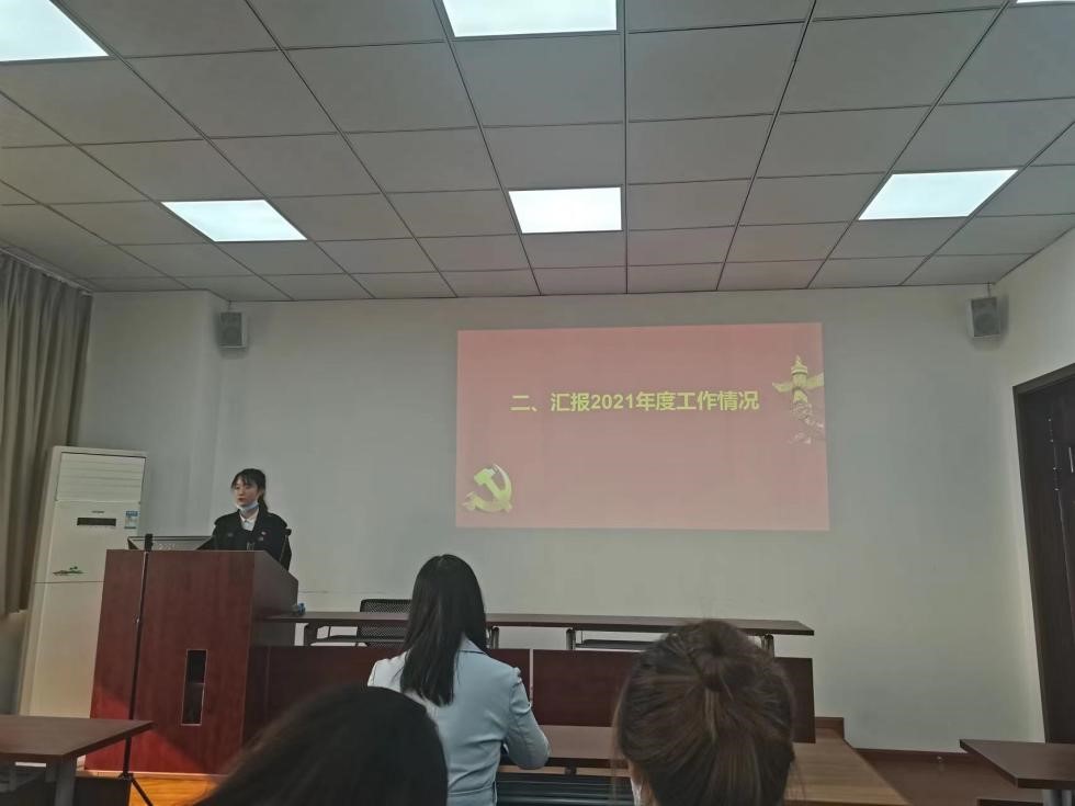 随后,张婷代表支部汇报2021年度开展工作情况,对过去一年党支部工作情况进行点评,并提出建议和未来的计划。