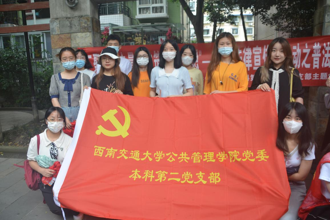 本科第一、第二党支部前往西南交通大学社区开展以食品安全为主体的法律知识宣讲及义务法律援助活动。志愿者分为知识宣讲、宣传等工作,以问答形式调动居民参与性,活动过程中居民参与性较高。活动最后,社区居民的脸上都洋溢着笑容,并用掌声与称赞向志愿者们表达了谢意。