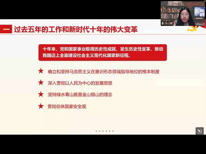 理论武装是党的一项十分重要的工作,也是我们党的重要历史经验和实践智慧。作为学生党员,要在学深悟透、弄通做实中把握理论武装的深层规律,用马克思主义中国化的最新成果武装自己,牢记初心使命,坚定理想信念,做到真学、真懂、真信、真用,为实现2035年远景目标、向第二个百年奋斗目标胜利进军贡献力量。至此,本次会议圆满结束。