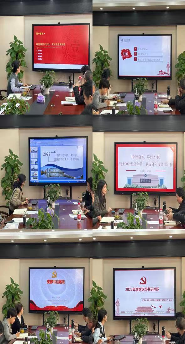 6个教工党支部、11个学生党支部书记通过PPT现场汇报的形式,围绕个人履职尽责情况、工作特色亮点、工作思考和建议等方面进行述职,分析工作中存在的问题和不足,并提出2023年的工作思路和计划,为新一年的足彩投注