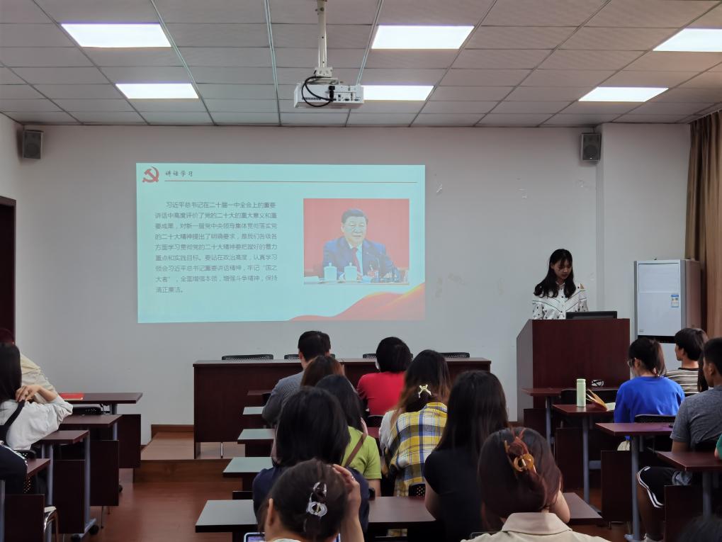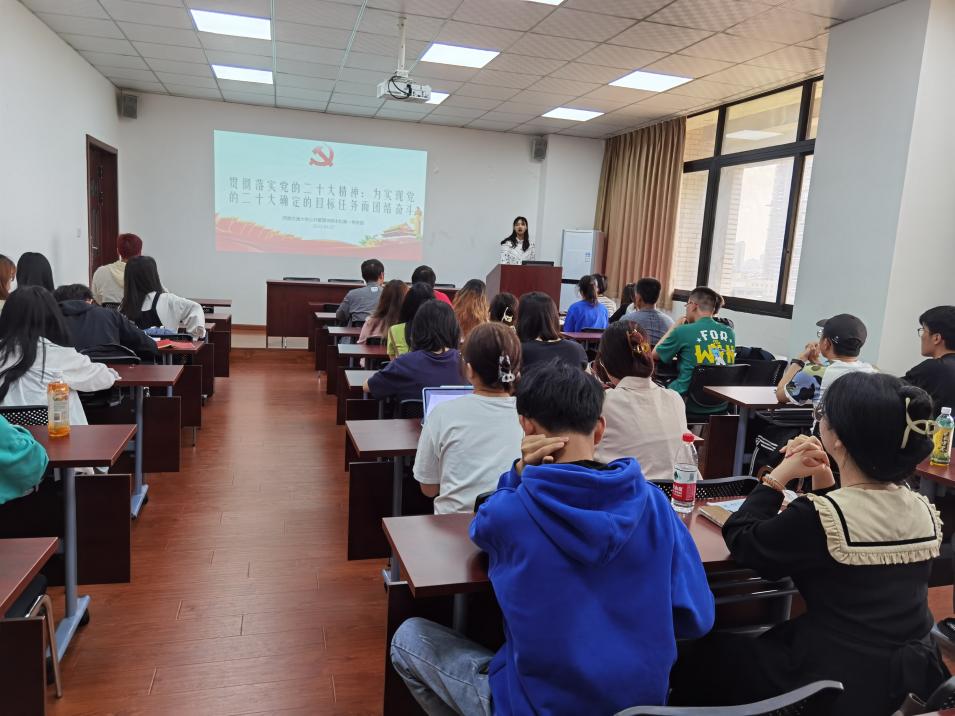 本科第一党支部在九里零号教学楼01104顺利举办“贯彻落实党的二十大精神:为实现党的二十大确定的目标任务而团结奋斗”主题党日活动。本次主题活动由杨溢同志作为领学人,组织支部成员紧密围绕二十大精神以及习近平总书记在二十届一中全会上的讲话等重要内容开展专题学习;并由支部成员围绕所学进行讨论,分享心得体会。