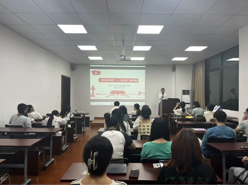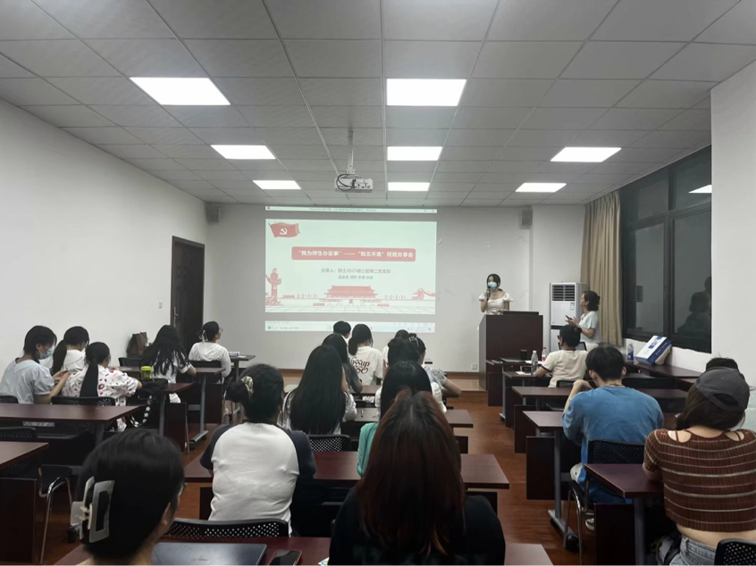 第二个议程为“我为师生办实事”——“知无不言”经验分享会。硕士2022级公管资环第二党支部邀请到硕士2021级公管第二党支部四位优秀党员同志就毕业论文开题经验和实习经验为大家进行了分享。