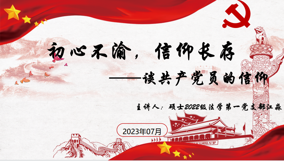 硕士2022级法学第一党支部于线上腾讯会议开展“初心不渝,信仰长存——谈共产党员的信仰”专题党课。本次党课由江淼同志主讲,全体党员、入党积极分子及发展对象参加学习。