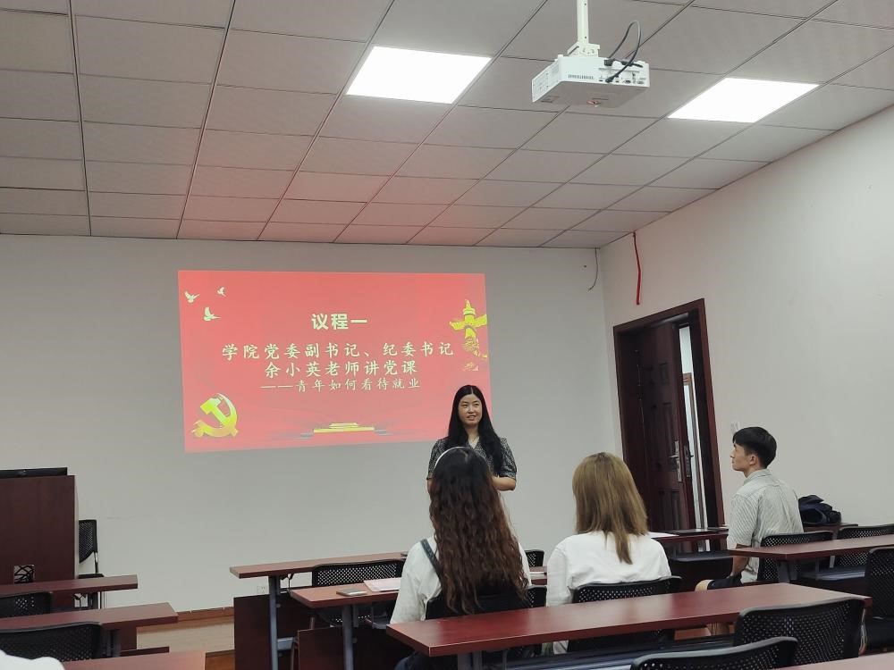 学生顺利就业,为大家树立正确的择业观。余书记以“党课”引领的方式和支部同志们畅谈了“青年如何看待就业”,余书记认为,当前的就业形势对于大学生来说可能会带来一定的压力,但是我们可以采取一些措施来应对。首先,了解当前的就业政策和就业形势,特别是把握党和国家的政策动态,及时调整自身发展方向,从个人素质条件进行重点培养,以符合用人单位的标准。其次,转变就业观念,调整就业心态,不要过分强调个人利益得失,到祖国和人民最需要的地方发挥光和热,客观制定就业计划。此外,足彩投注