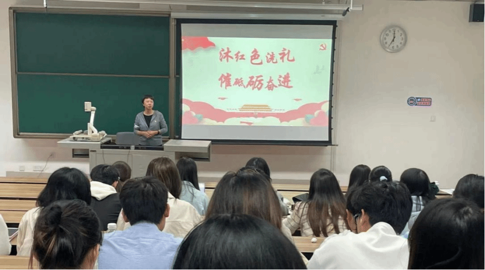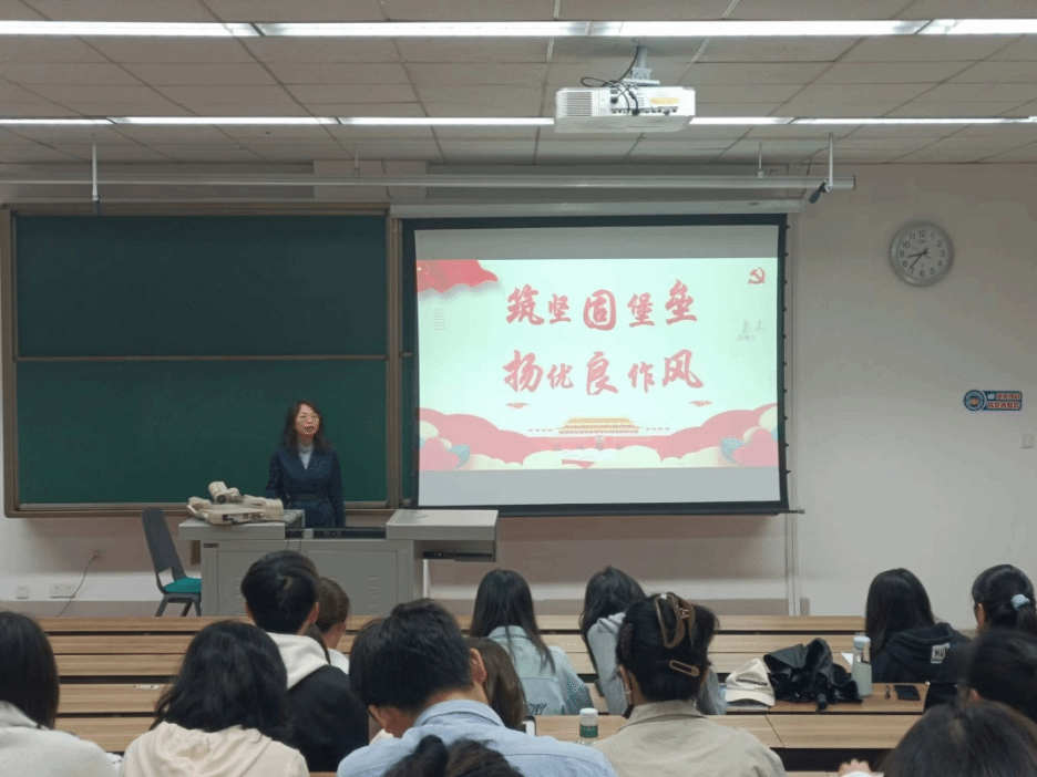 党委委员彭川宇老师为入党积极分子作《中国共产党的组织、纪律和作风》专题讲座。彭老师围绕党的二十大党章修改原则和要点、党章的重点内容解析以及深入学习贯彻党的几点思考三大方面展开全面系统的阐述,引导积极分子深入了解党的性质、宗旨、纲领、组织原则、纪律和作风,端正入党积极分子的入党动机,牢固树立起为共产主义事业奋斗终身的信念。