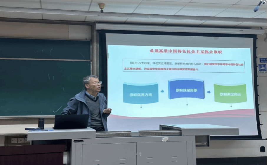 院长王永杰老师为入党积极分子培训作《中国特色社会主义》专题讲授。王老师围绕始终高举中国特色社会主义伟大旗帜,社会主义初级阶段是中国特色社会主义的初始阶段,中国特色社会主义道路,理论体系,制度和文化,中国特色社会主义的总依据,总布局,总任务四个方面展开讲解。通过对中国特色社会主义理论体系形成过程的梳理,深化了入党积极分子对党的基本理论知识的理解,还促使他们在具体实践中不断自我审视,完善自身,坚定了为共产主义事业奋斗终身的信念。