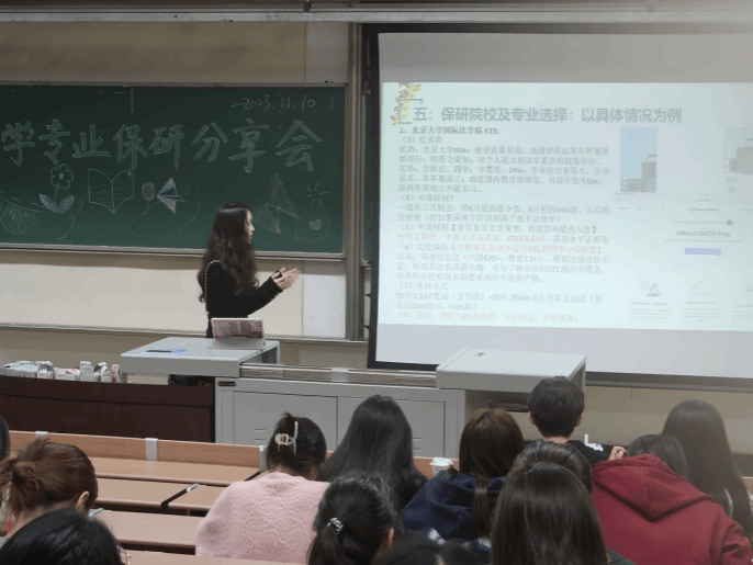 韩蒙恩同志首先为同学们讲述了保研的真正概念和含义,其次对如何取得本校保研资格以及如何准备保研进行了细致的分享,最后为同学们介绍了北大法足彩投注