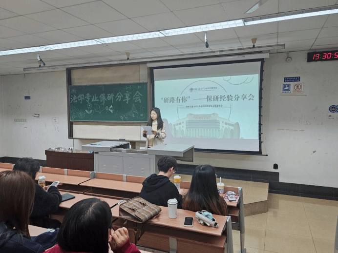 向芯雨同志为同学们非常细致地讲述了保研院校和保研专业比较,指引同学们如何在法学大类中选择适合自己的学科,或者是选择最具有优势的学科、更加合适的院校。