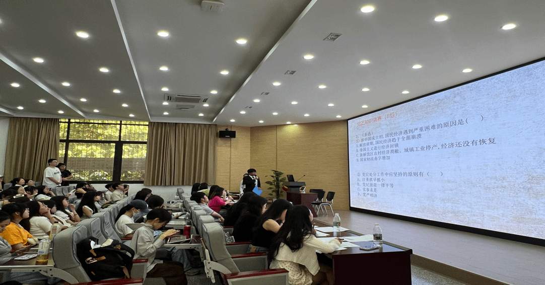 组织2024-01期入党积极分子在0231教室开展第二次社会实践活动——观看“青春心向党,筑梦新征程”党团知识竞赛。全体入党积极分子现场观摩,进一步加强入党积极分子的政治素质和党性修养,同时也考察和检验入党积极分子党课集中培训成果。