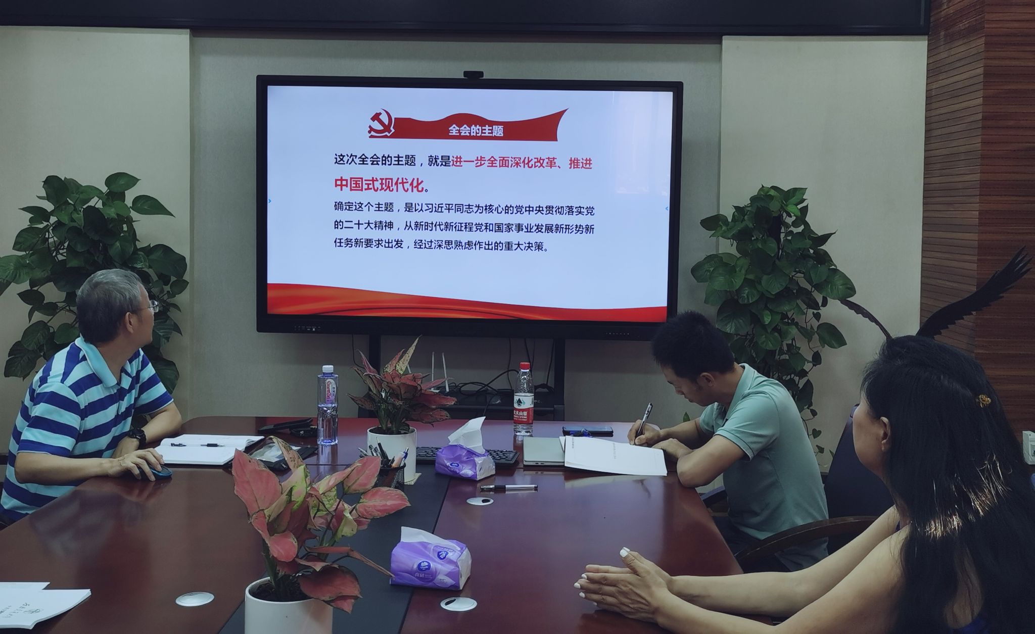院长、中心党支部书记王永杰作《进一步全面深化改革、推进中国式现代化—学习贯彻党的二十届三中全会精神》的专题分享,中心全体成员参与本次专题理论学习。