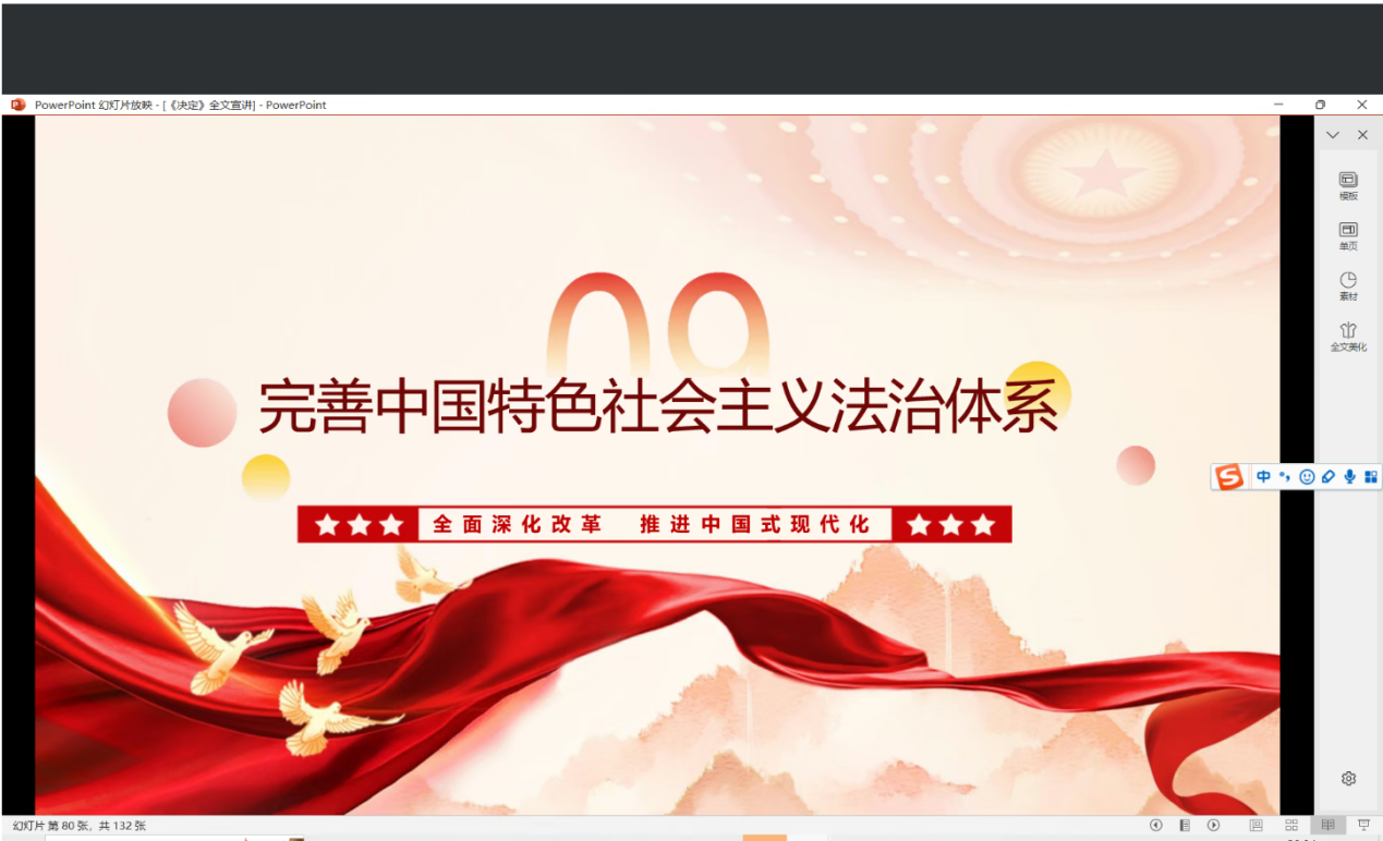 最后,由党支部纪检委员庞鸿源同志为全体参会成员作了关于党的二十届三中全会精神的重点解读报告。庞鸿源同志提纲挈领式地带领大家回顾了改革开放以来党的历届三中全会的简要历史、主要议题和重大政治意义,强调要突出政治站位,充分学习领会本次全会对新时代治国理政和改革开放事业的极端重要性。