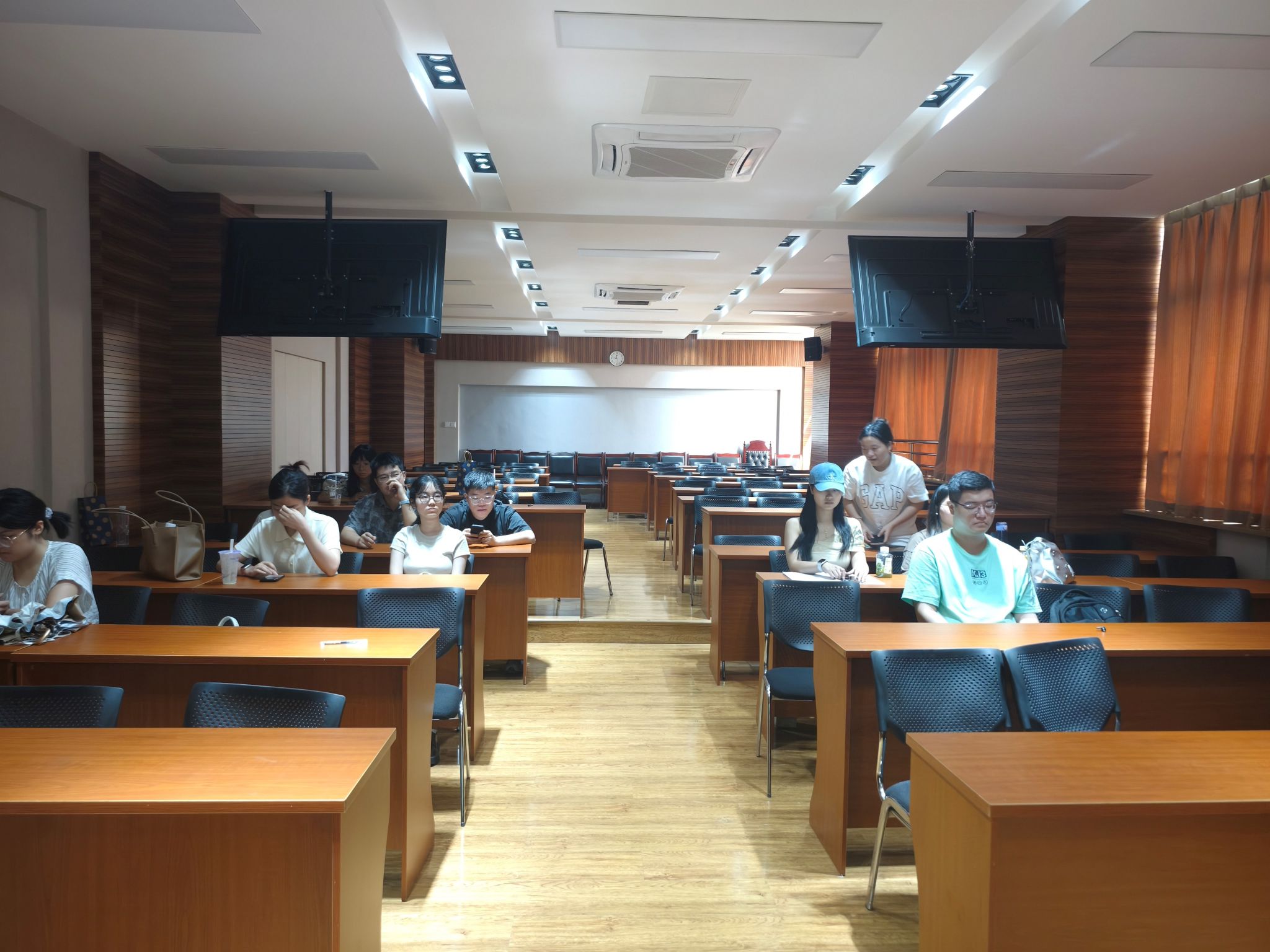本次活动共分为两项议程。首先由党支部组织委员钟露瑶同志上台作读书分享。钟露瑶同志分别为全体参会成员分享了《红岩》《习近平谈治国理政》第四卷以及《保卫延安》这三本红色经典著作。钟露瑶同志从书籍的主要内容和意义出发,重点介绍了这些书籍在当下的时代内涵和精神价值,参会成员均深受启发。
