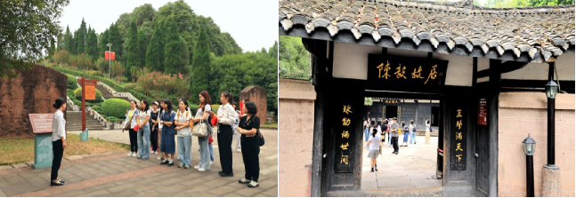 上午九点,支部党员同志到达四川省资阳市乐至县劳动镇的陈毅故里,跟随讲解员的步伐,开始了研学之旅。路过陈毅故里的片片残荷,师生们来到陈毅生平事迹陈列馆,这里陈列的七个展厅介绍了陈毅元帅的生平事迹,党员同志们驻足凝视馆内展出的历史照片、史料文物,也从中回溯交流那段浴血奋战的革命峥嵘岁月,纷纷被革命先烈们不惧牺牲、英勇抗敌的精神所感染。从陈列馆走出,党员同志们来到了陈毅故居。这里是陈毅元帅出生的地方,邓小平同志亲笔题书的“继先辈辛勤创业,启后人耕读传家”匾额还稳稳悬挂着。