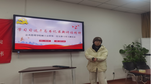 硕士公管安工第二党支部召开了党员大会,会上由党支部书记刘倩带领大家学习习近平总书记近期重要讲话精神。她指出,作为学生党员,要全面贯彻党的二十大和二十届二中、三中全会精神,深入学习贯彻习近平总书记重要论述和重要指示精神,深刻领悟“两个确立”的决定性意义,切实增强责任感使命感。