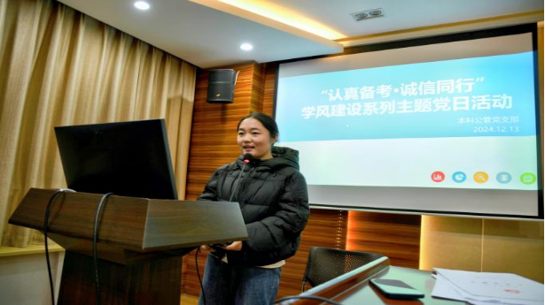 本科公管党支部本月开展了“认真备考·诚信同行”学风建设系列的主题党日活动,党支部书记强调了作为一名党员,应当以身作则,发挥先锋模范作用,增强诚信考试意识,落实诚信考试要求。随后,在学习全面推动共建“一带一路”高质量发展、推动新时代社会工作高质量发展等内容过后,华榕同志希望党员同志们明确主题教育的总要求,坚持学思用贯通、知信行统一。