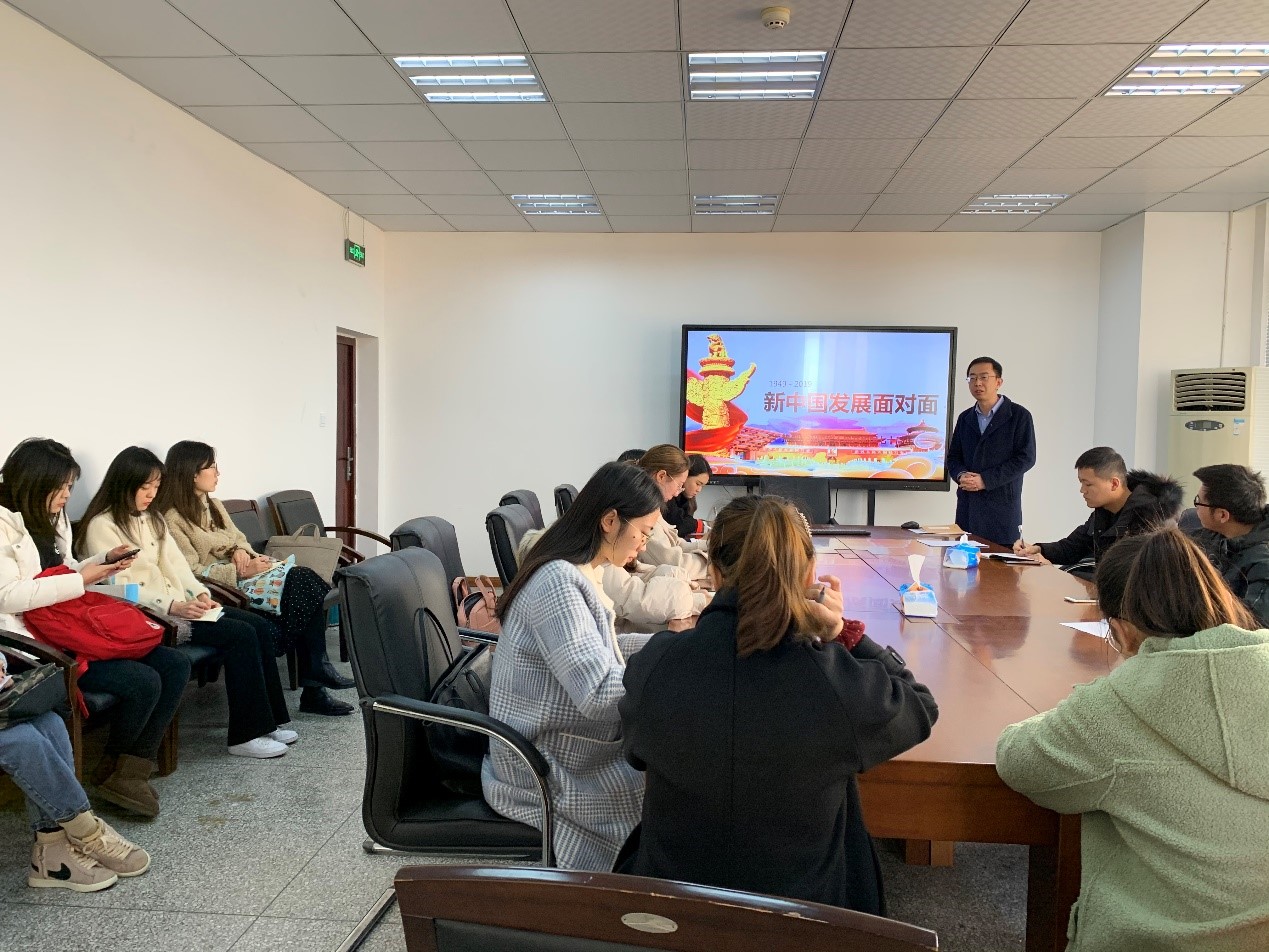 在组织生活会正式开始前,副院长李华强同志给支部全体党员讲了一堂题为“新中国发展面对面”的党课。他主要从以下三个方面对党课进行展开。首先回顾了我国七十年的沧桑巨变,1949年新中国成立,从当时的一穷二白到现在的全球第二大经济体,经济的快速发展,民生的逐步完善,科技的不断进步,制度的持续创新,新中国经历了巨大的变化,中国人民和中华民族凭借自身的勤劳勇敢,在实现中华民族伟大复兴的征程上不断取得突破。其次他讲述了我国七十年的光辉历程,从实现民族独立,人民解放到改革开放后我国的快速发展,到现在步入新时代,这七十年间我国取得了许多巨大的成就,这七十年更是中国共产党人带领全国各族人民铸就我国光辉历史的七十年。最后他总结道,当前中华民族所取得的成就归根结底在于坚持了中国共产党的领导,坚持了将马克思主义普遍真理同中国实际国情的相结合,这是全党全国各族人民共同努力奋斗的结果。通过李华强副院长所讲的党课,进一步增强了支部全体党员同志对祖国的自豪感以及自身的使命感和责任感,也让我们更加坚信只有在中国共产党的领导下,中华民族的伟大复兴才会实现。