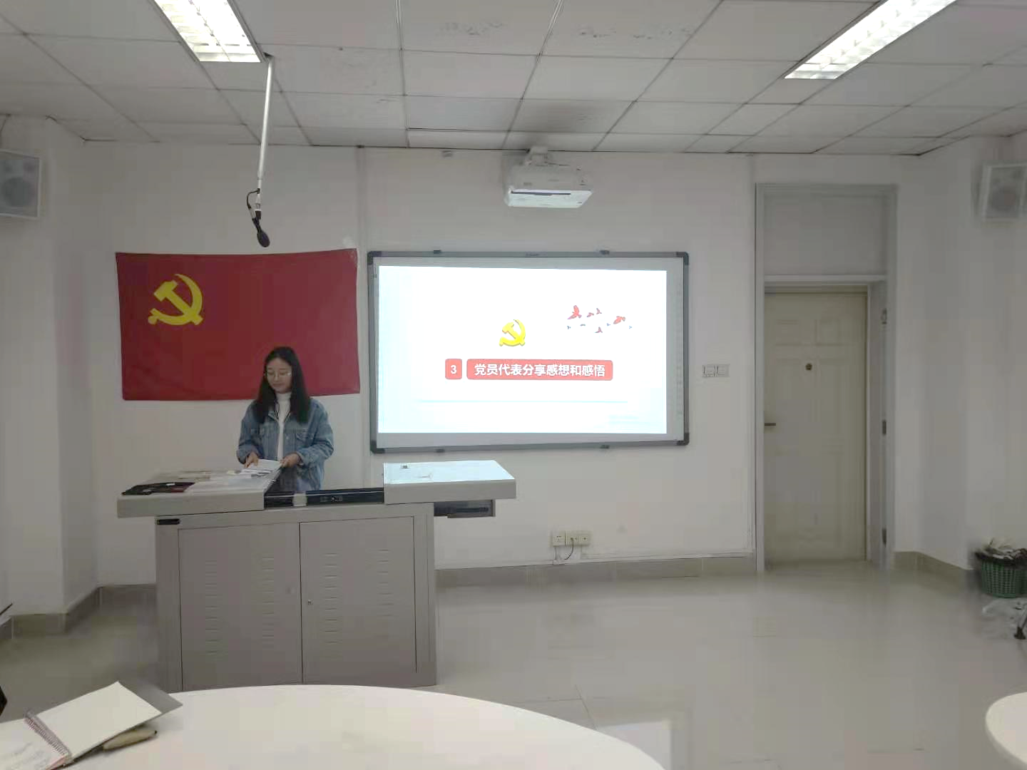 紧接着,进入第三环节,即由支部党员代表分享参与此次读书会的感想和感悟。分享者各自从自己所阅读的书目为出发点,或有感而发,或引发思考…例如,何小燕同志紧跟时事,从抗击疫情的角度出发,通过阅读《抗击疫情中国行动白皮书》,更加明确了坚持党中央的集中统一领导,是全国各族人民的利益所在、幸福所在,是我们最重要的政治优势,中国采取强有力的措施,不惜一切代价,全力救治患者,挽救生命,真正彰显了生命至上、人民至上、人民为中心的精神追求。曾莉鑫同志通过阅读《中华人民共和国简史》,思考中国社会的每一个阶段“进步”的“意义”,进一步阐释本书的价值,引发同志们对于上述问题的思考。随后,李琪同志分享了她们小组选择的阅读书目《“不忘初心 、牢记使命”优秀共产党员先进事迹选编》,重点谈到了在阅读“县委书记的榜样——焦裕禄”事迹后的感受。并最终总结出我们每一位共产党员,无论在学习、工作、还是生活中,都应该严格要求自己,遇事冲锋在前,努力发挥先锋模范作用,用自己的行动践行党“全心全意为人民服务”的宗旨。在分享与思考中,同志们互相从别人所阅读的体会中感受到了力量与价值,并且通过思想的交流使得这种价值被进一步放大。