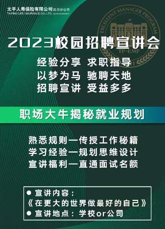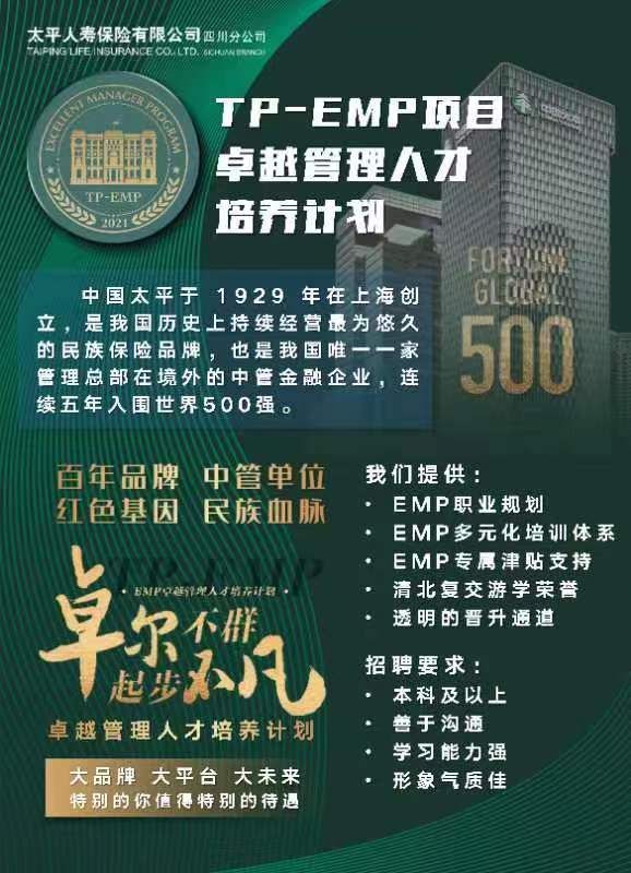 太平人寿TP-EMP项目卓越人才管理招聘开启在即,太平精英亲临讲述太平创业故事,带你走进保险,洞悉行业魅力。