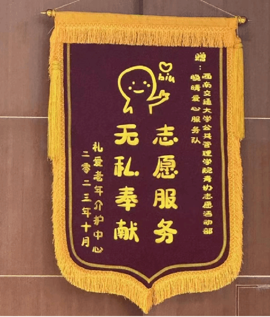 一路走来,公管青协在校团委、青志联的指导下收获颇多、受益匪浅。协会入选“七彩假期”全国1000支志愿服务示范团队、获得四川省首届高校志愿服务项目大赛实践项目赛道银奖、第六届中国青年志愿服务项目大赛四川省赛银奖、云支教“优秀宣传高校”、第九届交通公益志愿服务三等奖、第十届交通公益志愿服务季校级金奖等诸多荣誉,收到了数封社会实践表扬信和金牛区礼爱老年介护中心赠与的锦旗。公管青协已连续多年获得西南交通大学“十佳青年志愿者协会”荣誉称号,为交大建设贡献公管力量。