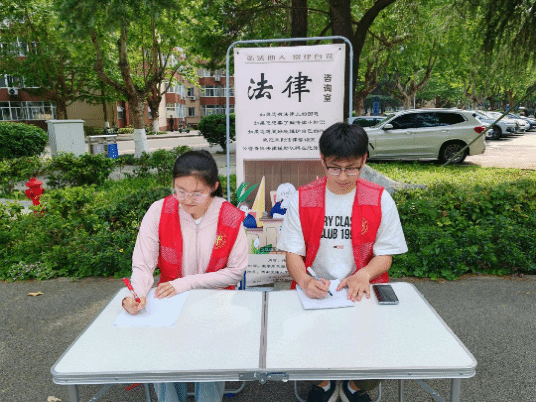 法学学科特色,在校内打造 “法律解忧店”,通过的“1+2+2+4”的咨询模式,举办法律宣传周、民法典教育、法律情景剧大赛等校级精品活动,开展宪法晨读、法律知识推送、法治新媒体作品评选等网络思政活动。依托“大学生法律之家”签约社区,结合国家安全、公共卫生、网络安全等热点,为校外居民提供法律咨询和普法教育服务。2023年,“法律解忧店”在校内开展户外咨询活动30余场,开展法律进社区活动2场,服务学生及九里校区周边居民400余人,累计志愿时长700余小时。