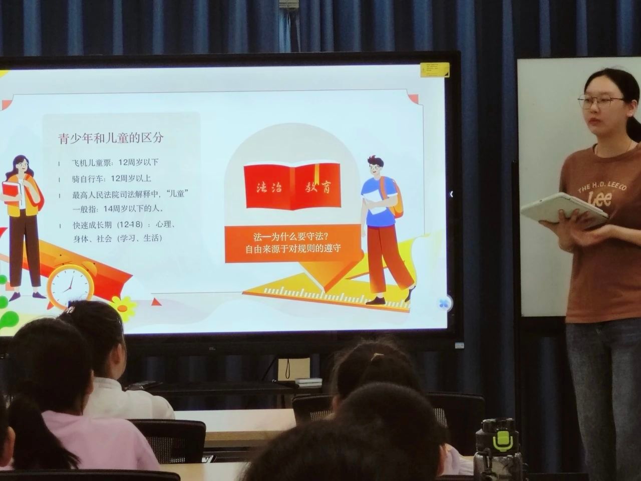 在第一部分,即青少年的三大法律责任讲述中,实践团队以互动问答的形式积极引导孩子们思考法律责任、理解法律责任。并以交通事故责任的承担,这一与人们日常生活紧密相连的方面为切入点,充分讲述三大法律责任。在第二部分的讲述中,通过精彩的图文展示积极引导少年们成为合法公民。在第三部分的关于自我保护的讲述中,志愿者们从学校、社会、家庭三个场景出发,分别讲述自我保护的方法,给孩子们带来了极大的体验感,孩子们也积极学习,现场氛围极其融洽!
