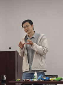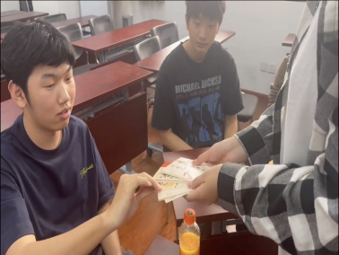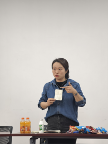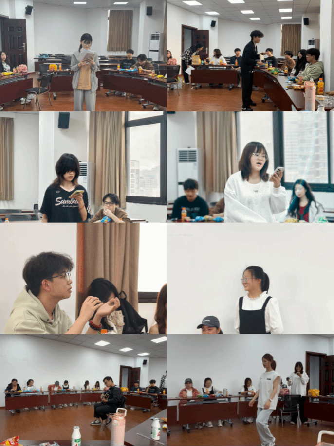 在“谜趣寻踪” 环节,班级共开展三个趣味小游戏。在书籍盲盒猜猜乐中,老师同学们通过书名联想内容,由推荐者揭秘书籍内核;在AI生图猜书名中,师生们抢答热情,积分竞赛趣味十足;击鼓传花游戏里,指定作者书单在传递中延伸,失败者分享经典图书片段,化惩罚为 “书香彩蛋”。游戏现场欢笑与掌声迭起,老师们也积极参与其中,欢笑之余多次进行著作推荐和分享,如《县乡中国》《西窗法雨》等,使同学们受益颇多。