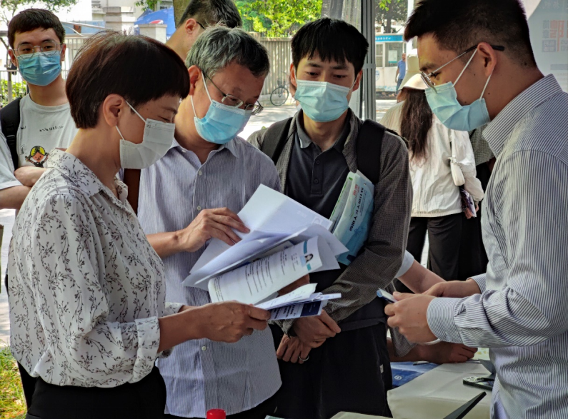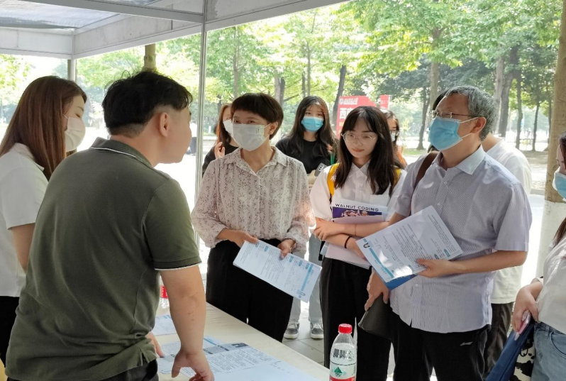 Later, Secretary Gao Fan and Dean Wang Yongjie led the graduates to communicate with the employers, looked into the basic information, talents demand, and job requirements of the employers, and introduced the basic information of the School of Public Affairs and Law and the graduates to the employers, and then recommended graduates at the scene to them, expecting the employers to supply with more opportunities for graduates so as to deepen exchanges and cooperation.