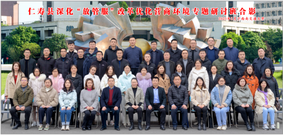 2023年2月6日至10日,眉山市仁寿县行政审批局主办、四川省干部教育培训西南交通大学基地承办的深化“放管服”改革优化营商环境专题研讨班,在西南交通大学九里校区顺利开班。培训班课程设置围绕深入学习贯彻中国共产党第二十次全国代表大会精神及习近平总书记来川视察重要指示精神、互联网+政务服务、深化放管服改革打造政务服务铁军、行政审批制度改革、法治行政与行政审批制度改革、营商环境评价指标体系及经验做法交流等。经过5天专家教授精彩讲解与现场教学,学员们纷纷表示拓展了工作思路、增加了专业知识,带班领导宋勇刚说:“学员对培训反响很好,也是最近几年我带队或参加的部门组织培训校方工作做的最好的一次”。