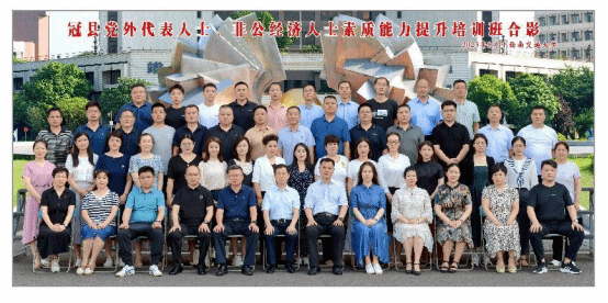 2023年8月14日上午, 冠县党外代表人士、非公经济人士素质能力提升培训班在西南交通大学九里校区顺利开班。本次培训旨在提升冠县党外人士,非公经济人士素质能力。本次培训设置了“习近平新时代中国特色社会主义思想解读、《中国共产党统一战线工作条例》解读、党外代表人士成长与作用发挥、党外人士阳光心态与心理压力调试、爱国统一战线的新发展与党外人士的胜任能力建设”专题课程,外出安排了崇州道明竹艺村、四川省山东商会,轨道交通运载系统全国重点实验室、建川博物馆等等。课程设置动静结合,结构完整,内容饱满。